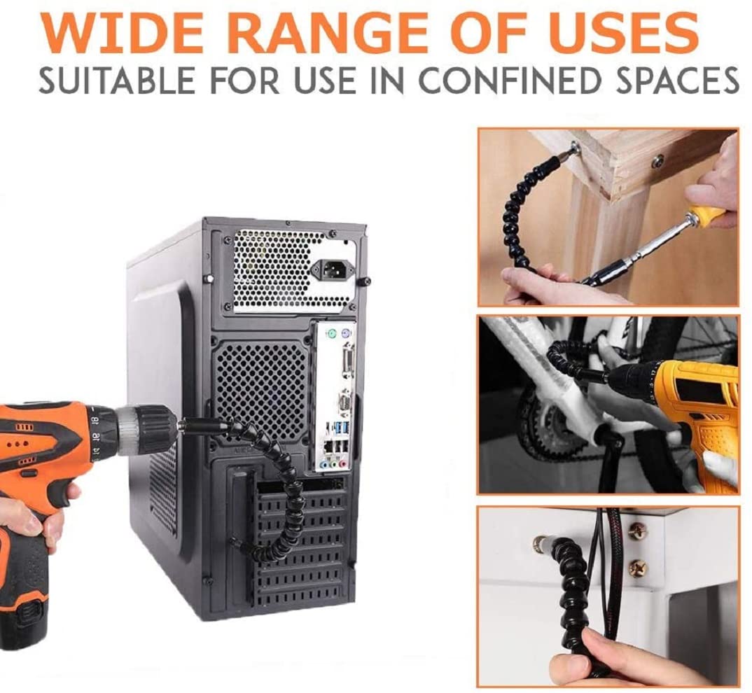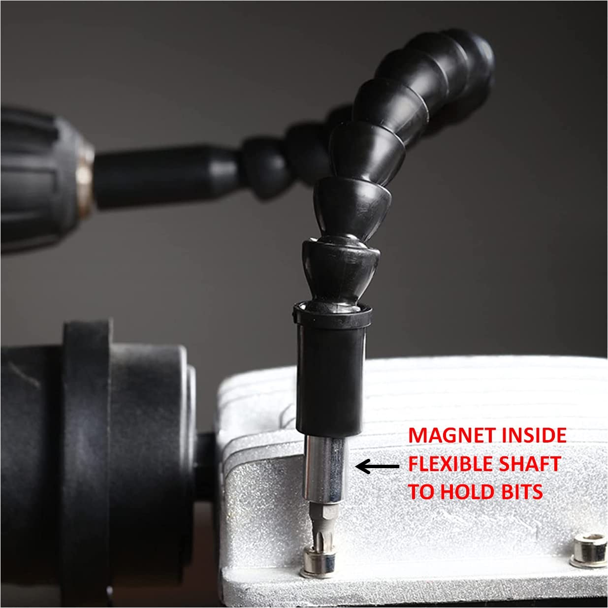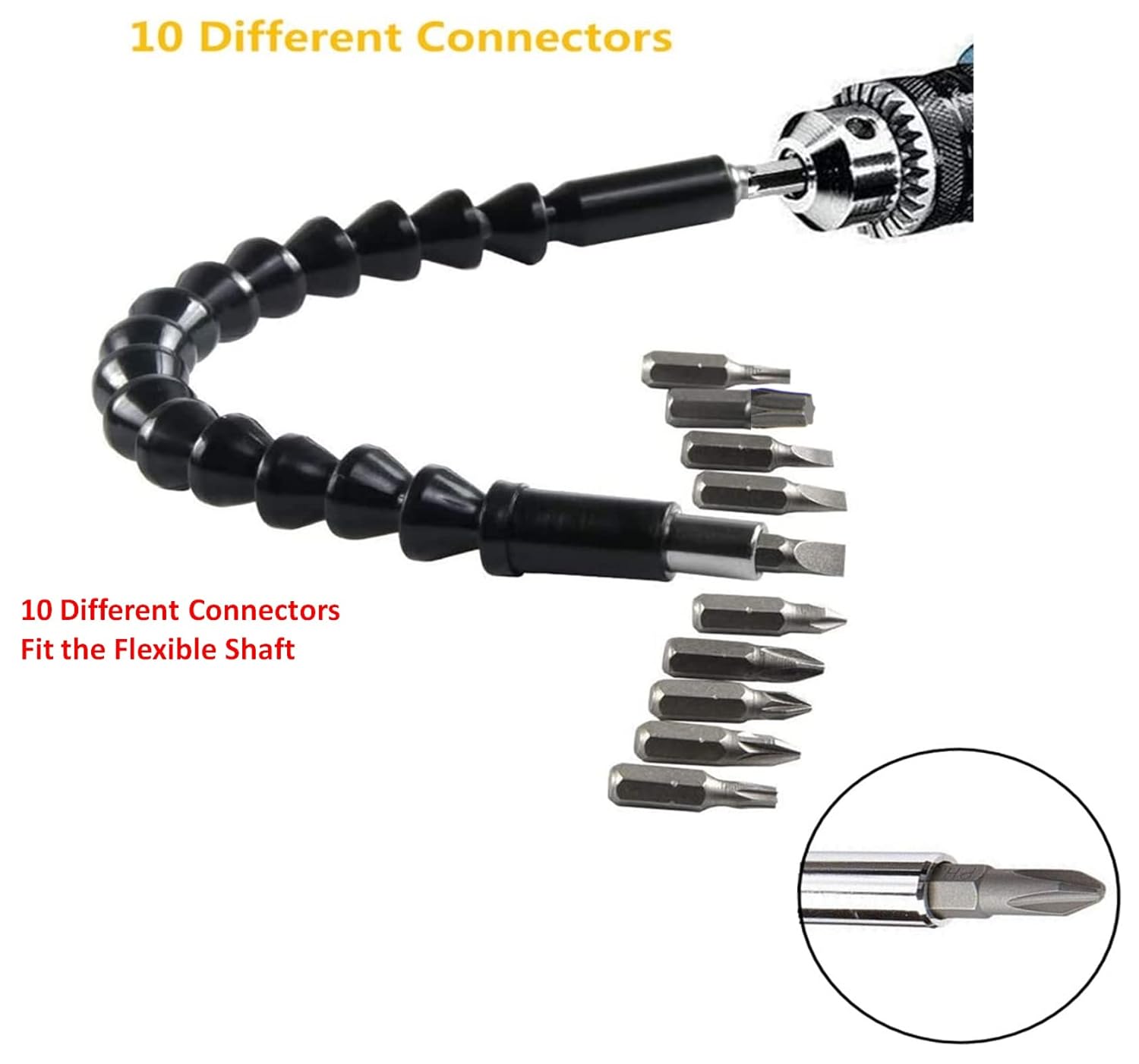 ATHGLOBAL 10Pc Bits with Flexible Shaft Set Screwdriver Magnetic Extension Adapter Holder Connector for Electronic Power Drill 6mm or ¼ Inch Hex Shank Power Tool Accessories Black Plastic and Metal